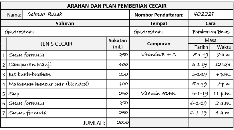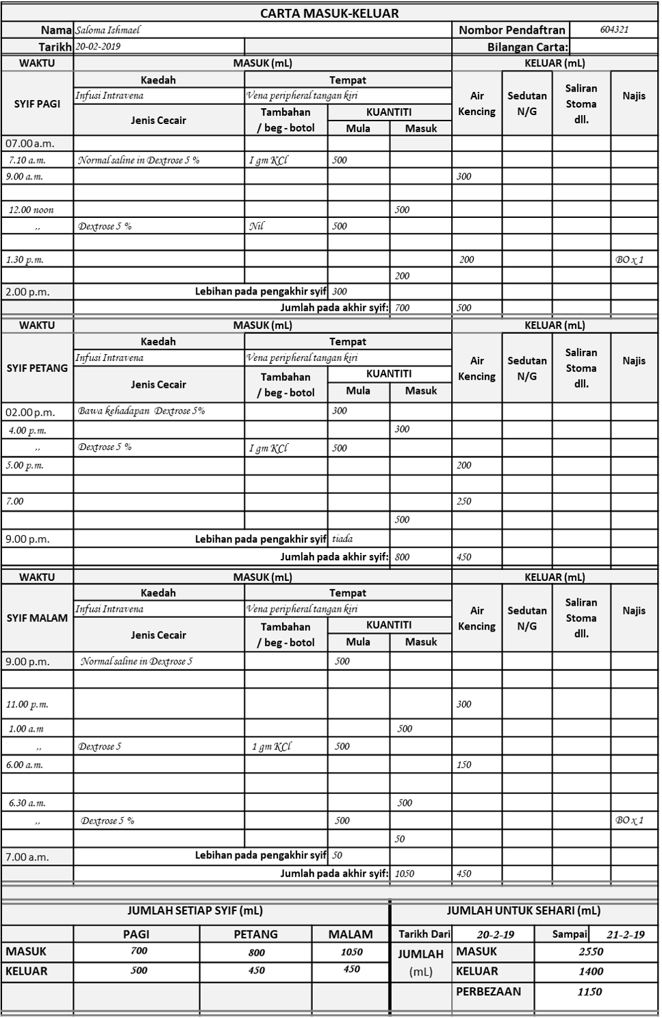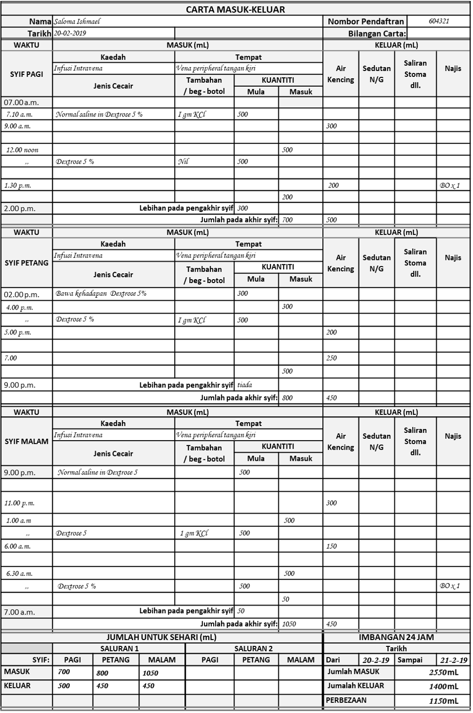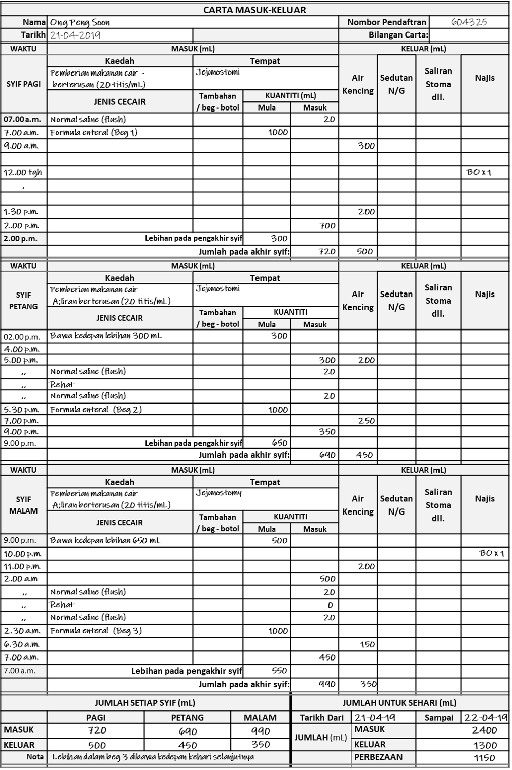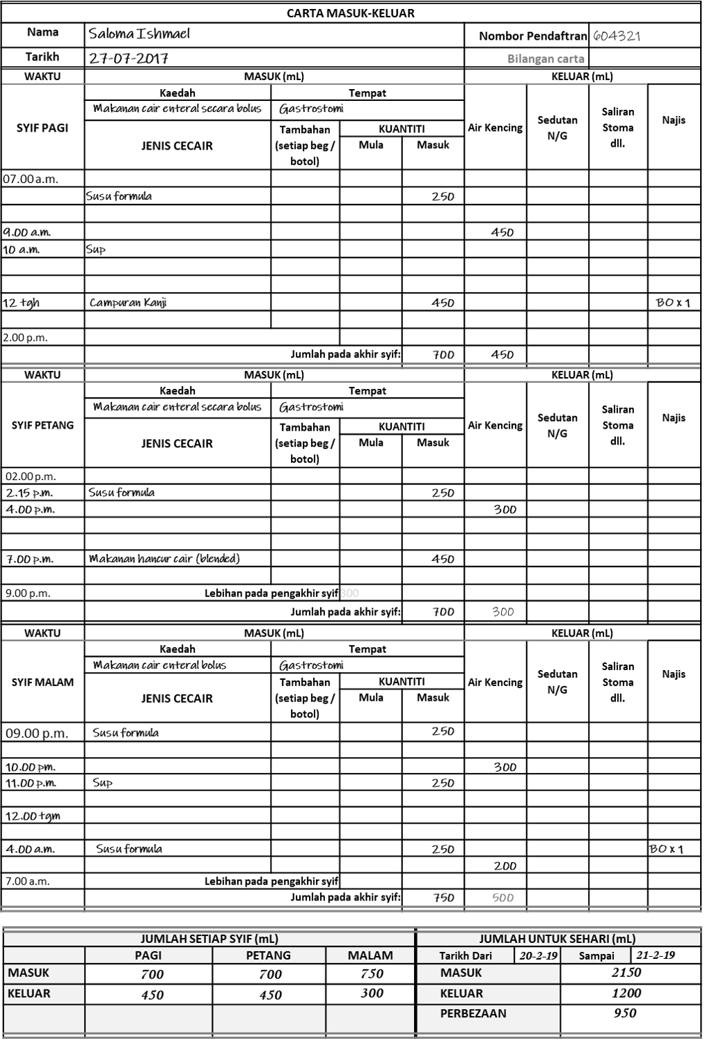 Contoh Carta Untuk Merekod Kemasukan Cecair Yang Melalui Saluran Jejunostomi