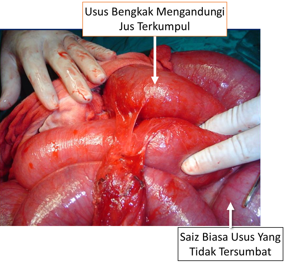Dalam situasi berlakunya usus tersumbat (intestinal obstruction), cecair yang tersekat dan tidak diserapkan menyebabkan banyak cecair yang tidak masuk semula kedalam peredaran darah. Ia merupakan kehilangan air, elektrolit dan protein yang serius.