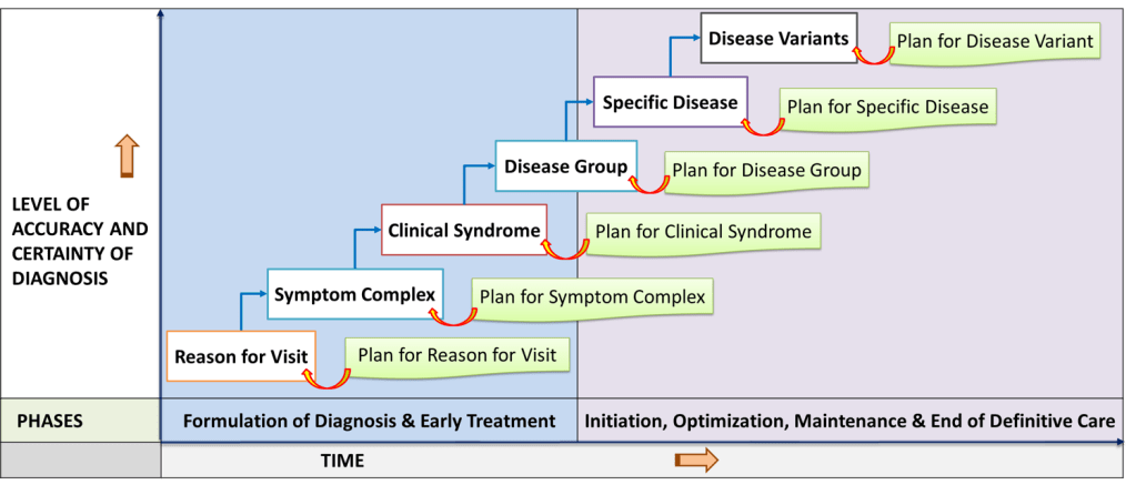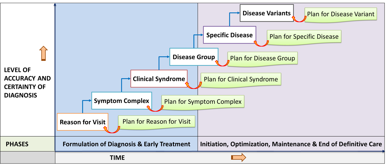 An episode remains active unless care has been discontinued. If a patient has multiple episodes, each episode is managed by a different team at a different visit or by the same team depending on the expertise required. Care is then delivered based on a SOP/Care Plans of each individual illness. Reference plans are generic. They give an overall and comprehensive view of the care to be given and the expected outcome for the entire care episode. The care provider constantly refers to them as the care progresses. He/she needs to be aware of the various alternative plans available because even if he/she starts with a particular plan for a certain problem, he/she may have to choose alternative plans later.