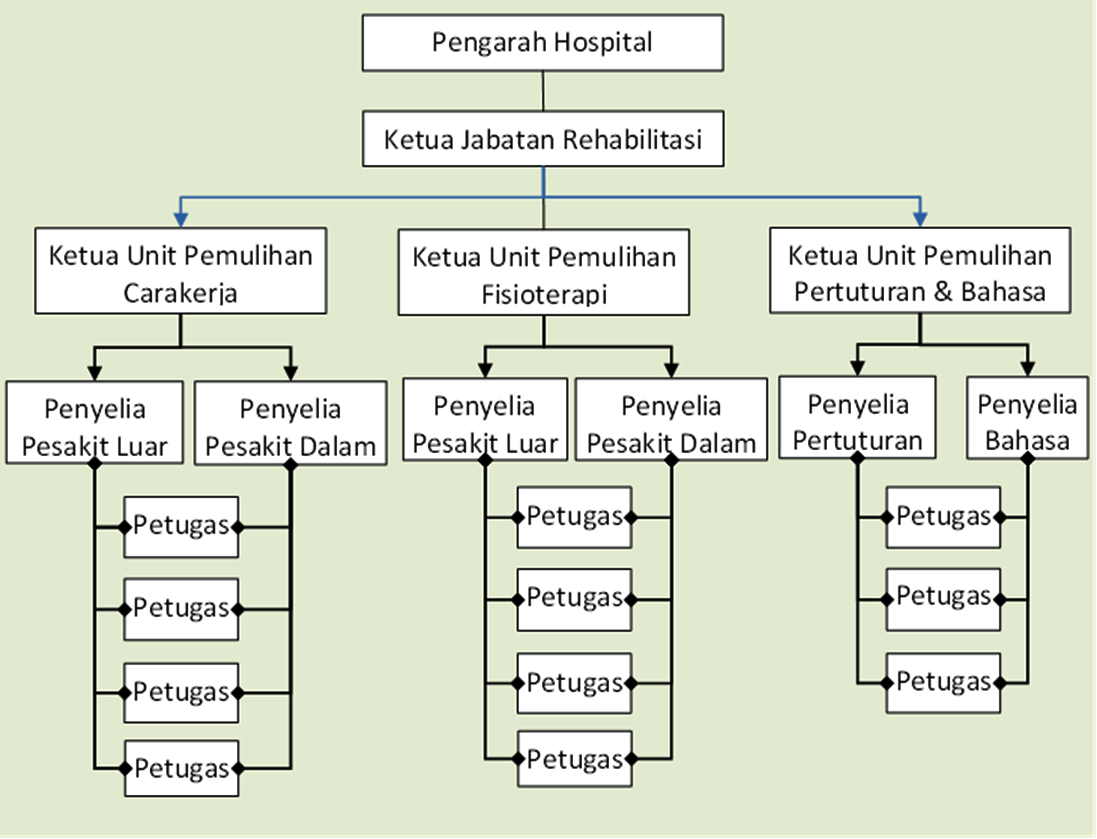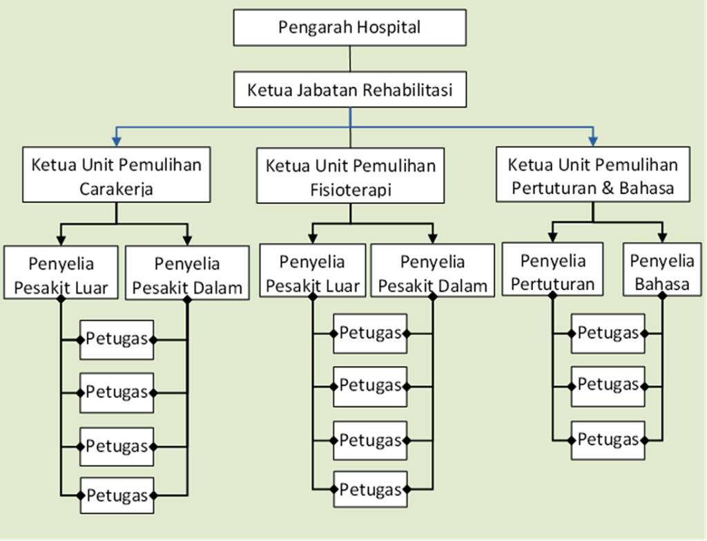 Setiap organisasi memerlukan pengurusan yang teratur di setiap peringkat. Bagi penyampaian perkhidmatan kesihatan/penjagaan pesakit peringkat yang dimaksudkan terdiri dari: