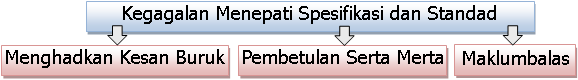 - Kos kegagalan (kerugian kerana pembaziran, kos buatsemula, kos pembetulan, belanja waranti dan kos mengembalikan kepercayaan pelanggan)